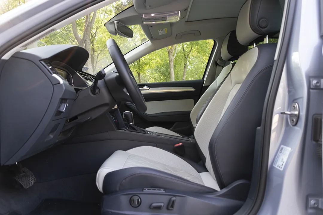 座椅宽大柔软,但就是这个颜色有点不耐脏。这辆5126公里的试驾车,椅面已经能明显看出污痕了。