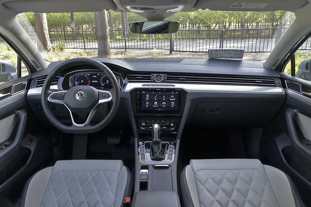 内饰还是熟悉的大众风格,严谨稳重,横平竖直的中控台简洁明了。但在用料层面,没有了桃木饰板,更多的是金属拉丝的铝质饰板,要“时髦”不少,并且触感和装配工艺都不错。