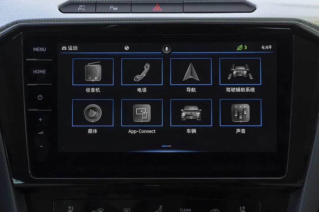 9.2英寸的中控屏幕尺寸更大,左侧带有一列快捷键。内置一汽-大众自研的“众行家”智能互联系统,涵盖导航、手机互联、远程控制等等。并且支持手势控制,当手掌靠近屏幕时,其会自动呼出隐藏的二级菜单。
