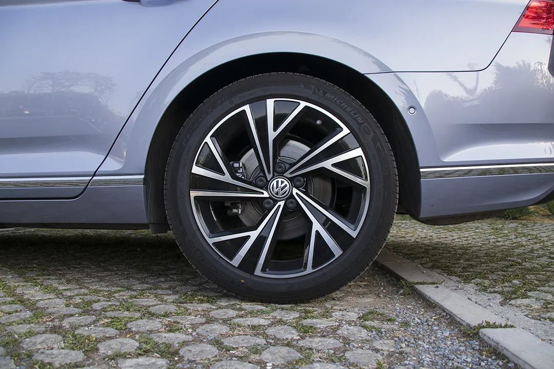 18英寸的轮圈采用的是双色五辐式造型,看上去有一种刀锋的既视感。配备了主打静音舒适的米其林浩悦轮胎,规格为235/45 R18。