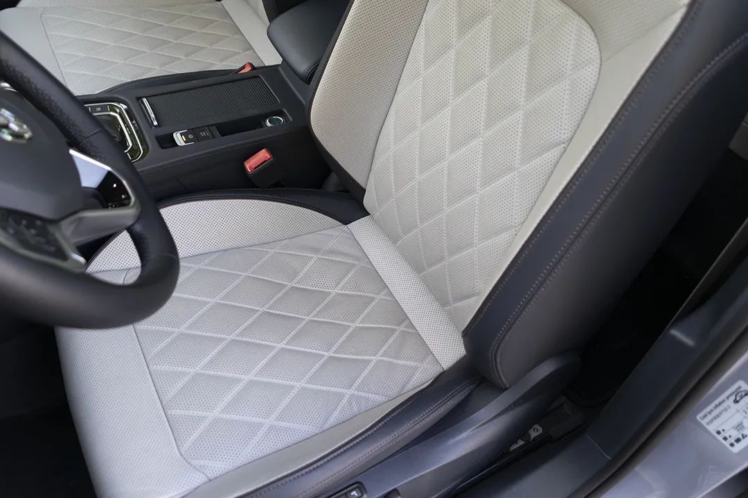 主驾12向电动调节座椅,带有两组座椅记忆,还有座椅通风/加热等。打孔真皮包覆,采用菱形的缝线装饰,档次感一下就上来了。车内出现菱形状的装饰,那这车的质感营造就十分到位。