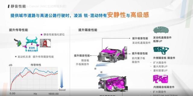 除了空间之外,广本的工程师还针对凌派锐·混动的油门踏板、刹车踏板、底盘进行了优化,并且还加入了ANC主动降噪技术。