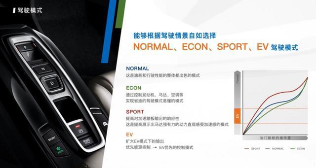 凌派锐·混动同样会拥有三种行驶模式和四种驾驶模式。三种行驶模式分别为:EV行驶模式、混合动力行驶模式、发动机行驶模式,这三种行驶模式会对应车辆行驶的速度和状态自行调整,例如城市行驶的时候,就会使用纯电行驶模式,高速行驶时则使用发动机行驶模式,进一步降低油耗。而四种驾驶模式分别为NORMAL、ECON、SPORT、EV四种模式,不同的模式会拥有各自不同的动力响应调校。