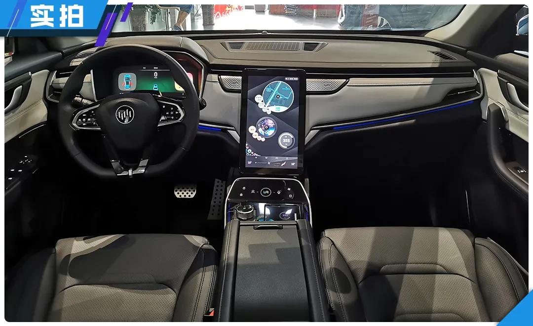 威马EX5-Z的内饰造型延续了EX5的设计,实体按键的大幅缩减提升了内饰的整洁度,同时大尺寸中控屏和仪表盘的存在也带来了足够的科技感。另外,EX5-Z的中控屏同样支持旋转,如果你不喜欢纵置,也可以通过屏幕边缘的实体按键进行横置操作。