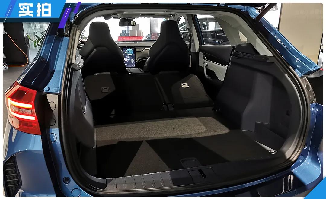 另外,新车后备厢的纵深也不错,不放倒后排座椅也能满足日常使用需求。如果有更大的物品需要放置,EX5-Z也支持后排座椅按比例放倒,只不过放倒后有一定的坡度,无法达到全平的程度。