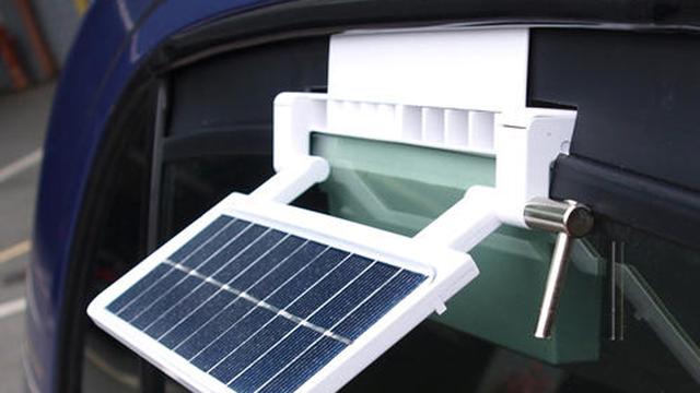这个产品的原理很简单,就是通过风扇不停地将车内空气排到车外,让车内外的温度尽可能地趋于一致,这样上车时车内就不会比外界温度高很多。采用太阳能的好处就是不用再外接电源,结构也相对紧凑一些。