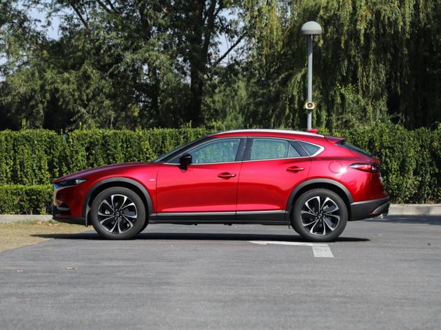 车身侧面,全新CX-4保持着轿跑SUV一贯的流线造型,低矮的车身和修长的机舱造就了完美的车身比例,从B柱开始向上扬的腰线显现出明显的俯冲感。