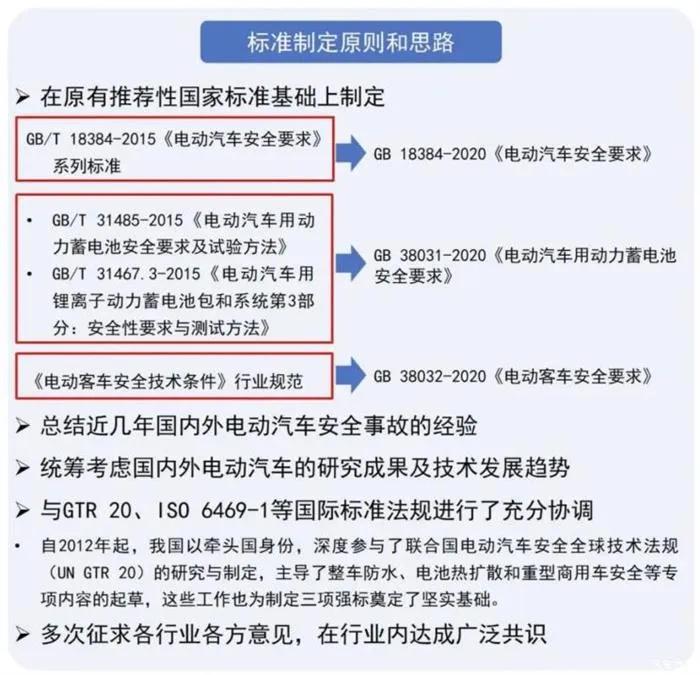 值得一提的是,此次发布“三项强制标准”是以我国原有推荐性国家标准为基础,并与联合国电动汽车安全全球技术法规(UN GTR 20)全面接轨,目的是为了进一步提高和优化对电动汽车整车和动力电池产品的安全技术要求。