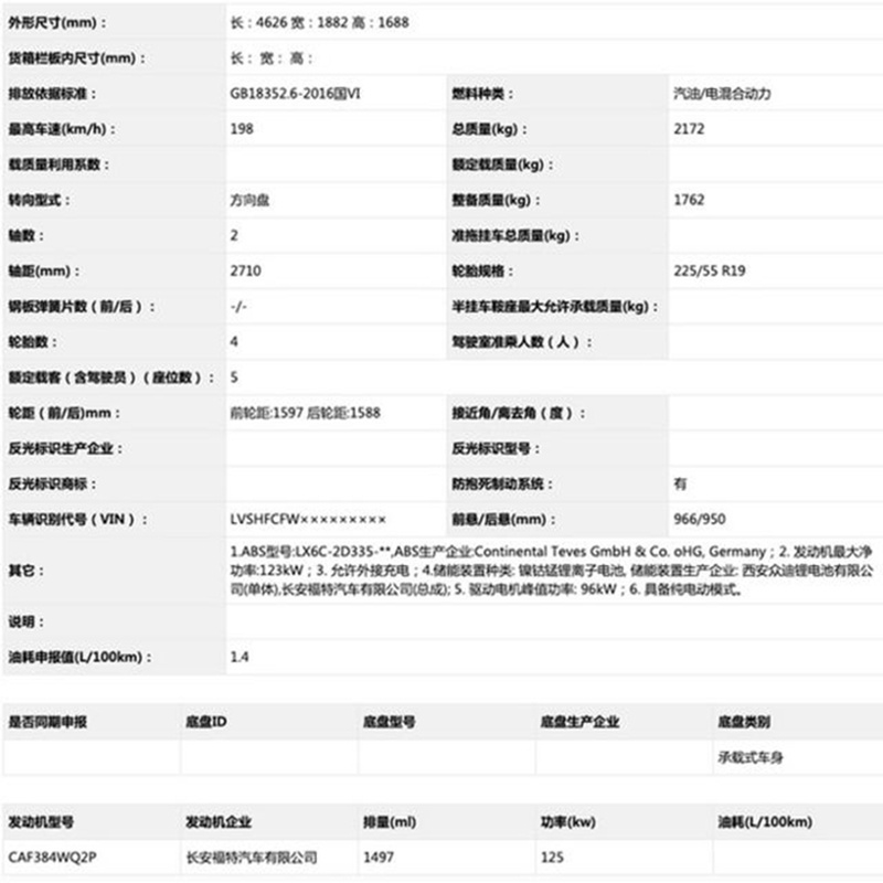 车身尺寸方面,新车的长宽高分别为4626/1882/1688mm,轴距为2710mm。侧面来看,车身线条流畅,采用溜背式车身造型,增添了车身侧面运动感。动力方面,新车将搭载1.5T三缸发动机的插电式混合动力系统,发动机最大功率170马力。
