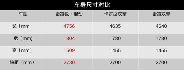 在车身尺寸上,凌派锐·混动的长宽高分别达到了4756/1804/1509mm,轴距为2730mm,全面超越竞品。而在目前在售的普通版凌派(尺寸与混动版车型一致),其后排的乘坐空间和舒适性也要更突出一些,最起码要略胜于卡罗拉双擎的表现。