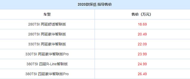 5月14日,一汽大众2020款探岳 (配置|询价)上市,新车共推出6款车型。新车相对老款车型主要针对配置方面进行调整。