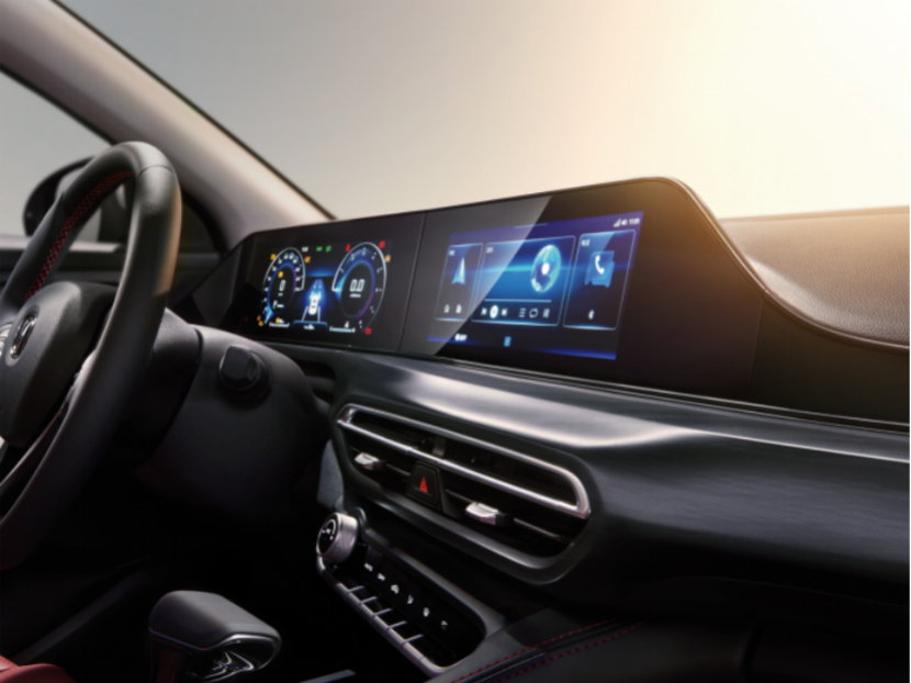 双连屏是这款车在内饰上的亮点,10.25英寸全液晶仪表盘和中控屏。动力有两套,1.6自吸加5MT和爱信6AT,另一套是1.4T加7速湿式双离合。