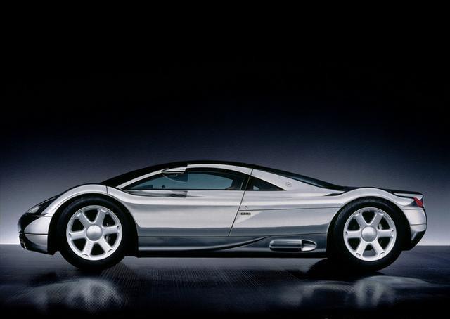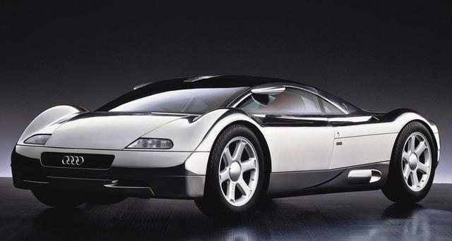 这应该算是90年代概念车风潮的开始。1991年奥迪于东京车展发布了Avus Quattro,中置W12引擎,四轮驱动。你可以把它看作是R8的祖先。整车用铝合金来打造车身,厚度仅为1.5毫米。极致轻量化的车身仅重1.25吨,搭配509匹马力的W12,可以在3秒内完成0-100km/h的加速,极速超过320km/h。