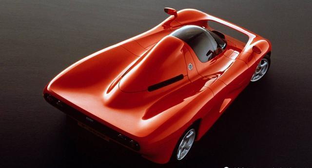全铝车身,碳纤维框架,一个简易的可拆卸顶棚。3.0双涡轮V6可以爆发400匹马力,6档手动变速箱可以把这台车在4秒内从0拉到100km的时速。当时的阿尔法·罗密欧江河日下,你不能奢望这个企业还有钱来做这种中置超跑,所以这个项目只能是一个概念。