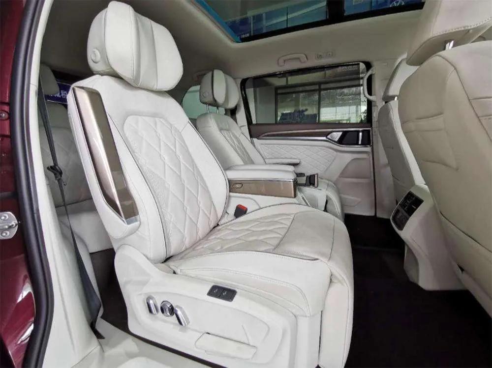 在MPV最重要的空间布局方面,威然采用了2-2-3座椅布局,其中二排座舱采用行政级礼宾座椅,座椅用了菱形格纹理的真皮打孔,可以零重力电动调节,座椅通风,加热按摩一应俱全。其次该车的车身尺寸分别为5346/1976/1781mm,轴距更是达到了3180mm,所以车内空间绝对是不用担心的,留给第二排的享受空间也是非常充裕的。