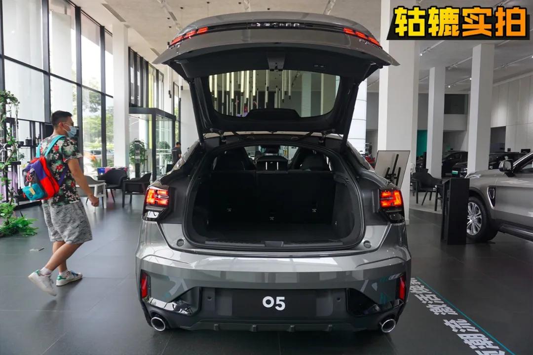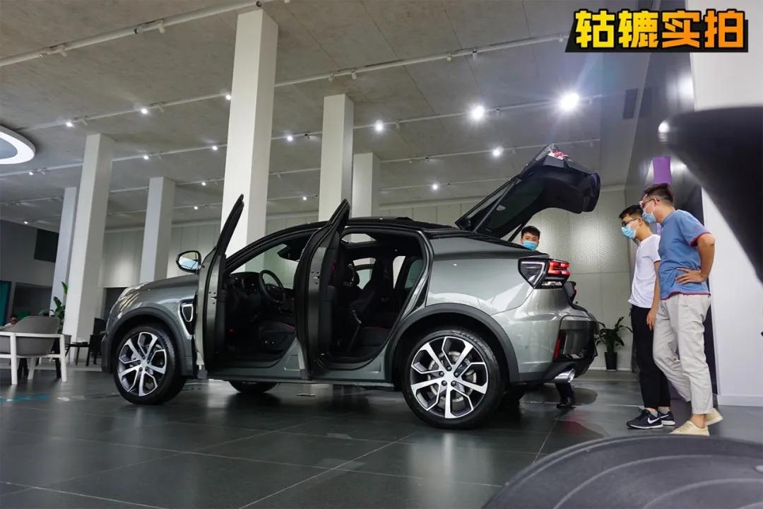 据前来看车的年轻人表示,侧面设计是最吸睛的部分。车顶线条经过B柱后以黄金角度向下倾斜,溜背式设计勾勒出轿跑SUV应有的姿态。轱辘哥认为,领克05是目前已推出的轿跑SUV中,少有能把大溜背设计和车侧美感结合的比较好的车型,看起来十分协调。