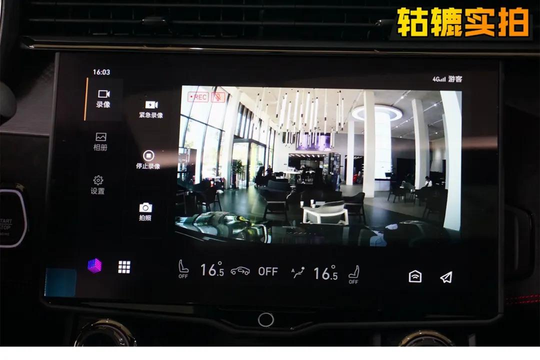 轱辘哥还打开了车上自带的行车记录仪,或由于室内光线不足,看起来有点黑。可以看到大屏下方有个指纹识别按钮,通过指纹识别了驾驶者的身份后,将会将座椅、后视镜角度等调节至符合驾驶员习惯的设定。