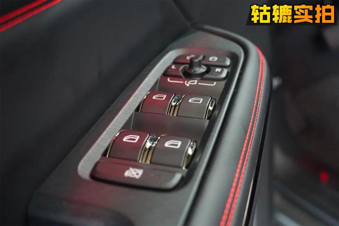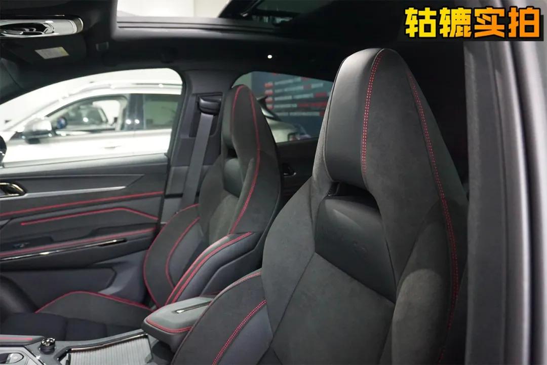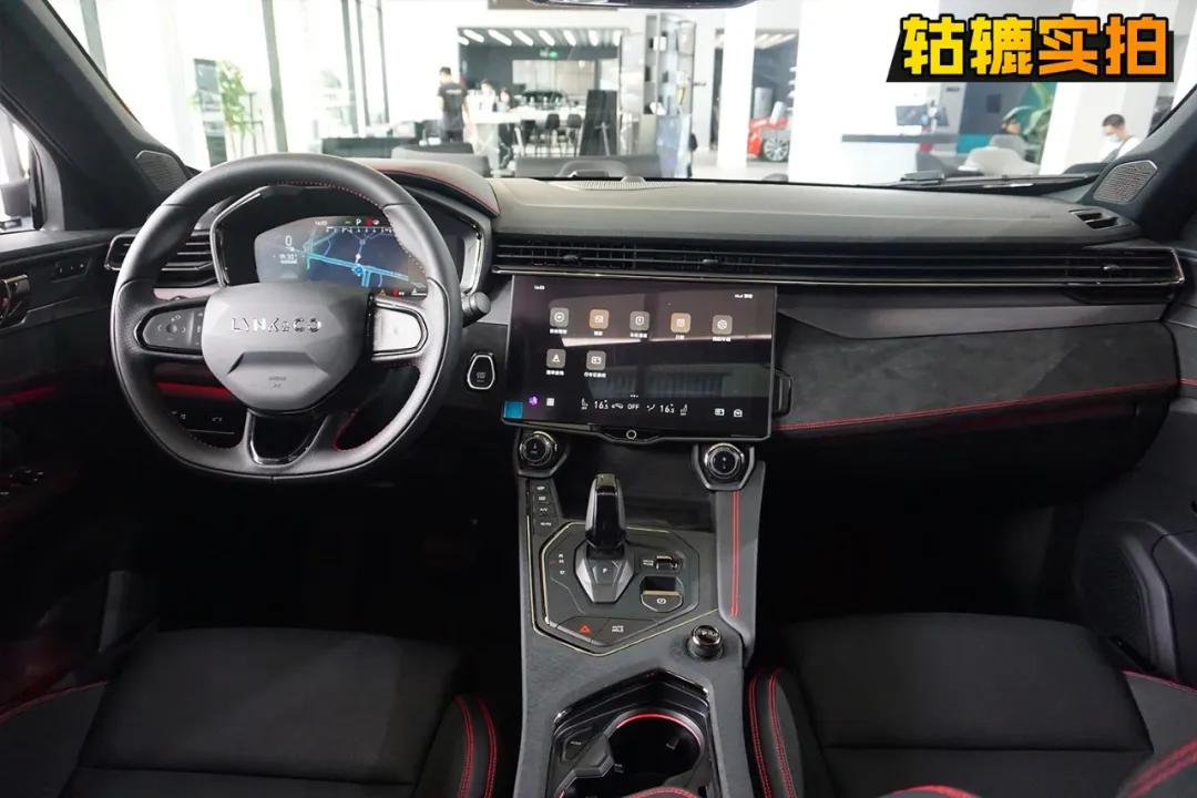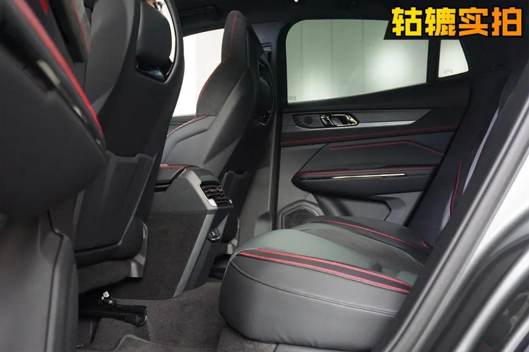 为了营造豪华感,领克05采用了大量的真皮以及翻毛皮材质,搭配红色缝线和氛围灯,乘坐体验还是很优秀的。采用一体式座椅,领克05的运动“人设”不倒。轱辘哥实拍的这台车型的座椅采用的是皮质和翻毛皮材质结合,坐感舒适且侧翼的包裹性较强。