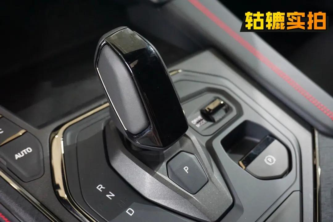 方向盘握感舒适,采用红色缝线点缀,不过按键是一个整体而非单独控制,操作起来需要适应一下。