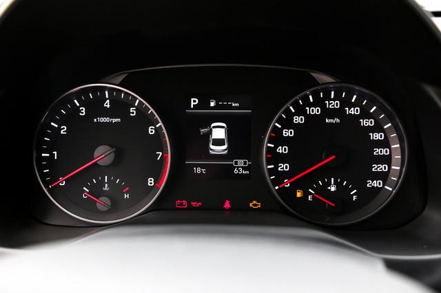 为了避免纯黑配色导致内饰氛围过于沉重,领动的内饰还增加了一些银色饰条。仪表盘为传统样式,中间为液晶显示屏,再加上仪表盘中的镀铬边框,视觉质感上还是提升不少。而两款高配车型配备了7英寸液晶仪表盘。