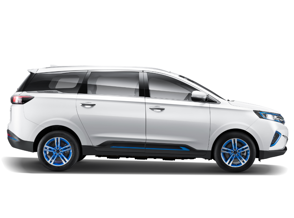弛虎EM6定位于一款纯电动MPV,为彰显其新能源身份,我们可以看到新车在车身多处均加入了蓝色饰条点缀,同时新车采用了封闭式的前中网设计,充电接口被设置在大发品牌LOGO后,前脸下包围处造型新奇,使得整个前脸颇具辨识度。车身尺寸方面,新车的长宽高分别为4849/1858/1777mm,轴距为2880mm,车内采用了2+2+3的座椅布局。