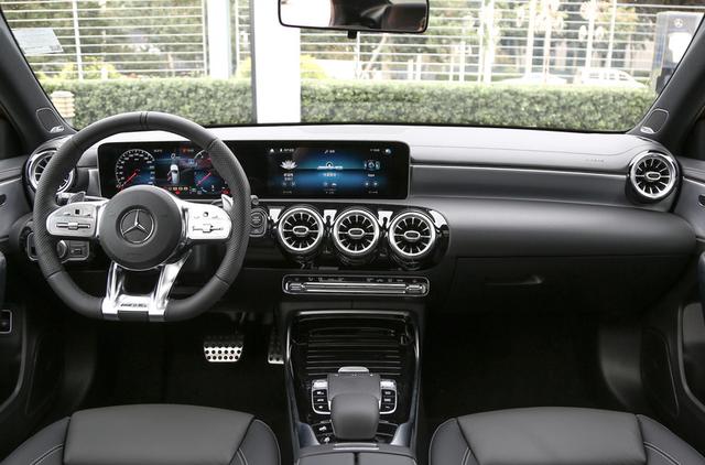 作为一款AMG车型,首先介绍性能。动力相信不用多说,代号260 920的2.0T涡轮增压发动机压榨出306马力。匹配7速双离合变速箱、多片离合器式适时四驱、235宽度米其林PS 4S系列轮胎等众多直指性能领域配置,再加上A级紧凑型轿车的重量基础和AMG特色之一的RACE START(竞技起步模式),百公里加速轻松跑进5秒。所以动力方面,这款国产A35L完全算得上"合格的"AMG和小钢炮。