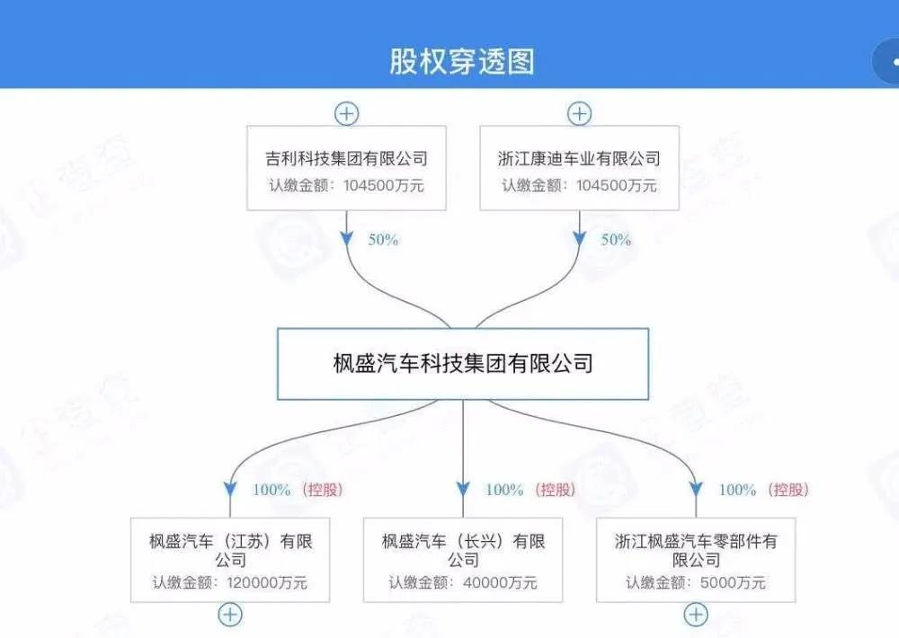 作为一个主打纯电动汽车的新品牌,很多人以为它也是新势力造车,但其实它背靠吉利汽车。据了解,枫叶品牌所属的枫盛汽车科技集团有限公司,是一家隶属于吉利控股集团旗下的新能源公司,注册资金24.04亿,其中吉利控股出资78%,浙江康迪车业有限公司占比22%。