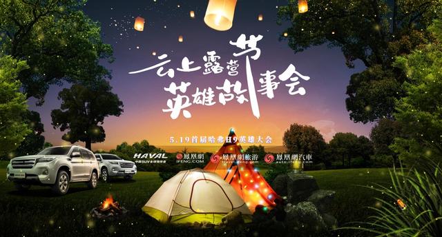 5月19日这一天,既是中国旅游日,又是5·19首届哈弗H9 (配置|询价)英雄大会的日子。英雄大会自然汇聚天下英雄,由中国越野旗舰哈弗H9牵头,联合改装品牌罗伦士、户外运动专家三夫户外、中国越野改装品牌运良改装以及凤凰网,以“云上露营节 英雄故事会”为主题,在凤凰平台用直播间及分会场远程连线嘉宾、车主,发起5•19首届哈弗H9英雄大会的线上特别版。