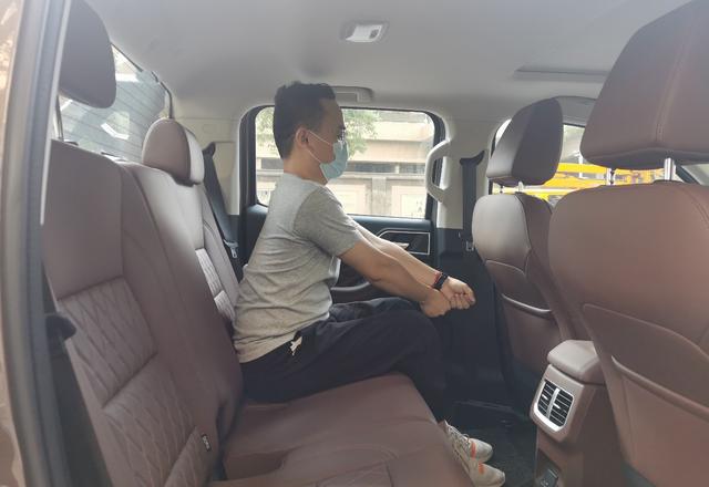 长城炮真的很大以至于我都不能用开普通轿车和SUV的方法去驾驭它,只能小心再小心。不过大尺寸也带来一个好处,它的乘坐空间真的很不错。我身高只有168cm,把前排调至合适驾驶位,后排腿部空间还剩4拳多的空间,头部则剩1拳2指的空间。除此之外,后排的靠背角度和坐垫宽度也设计合理、舒适,至少能满足像我这样身高人的需求。试驾时天气炎热,而乘用版长城炮后排配有空调出风口来实时降温,还是挺美好的。