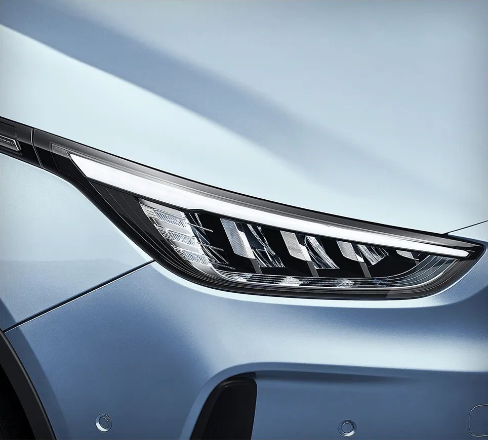 从预告图中我们可以看到,全新几何C采用了驭风下压式前脸,流线下压式的车头线条能够有效降低风阻。同时,新车还将配备光棱之刃前大灯,灯组内部由80颗高亮LED灯珠构成,尽显锋芒。