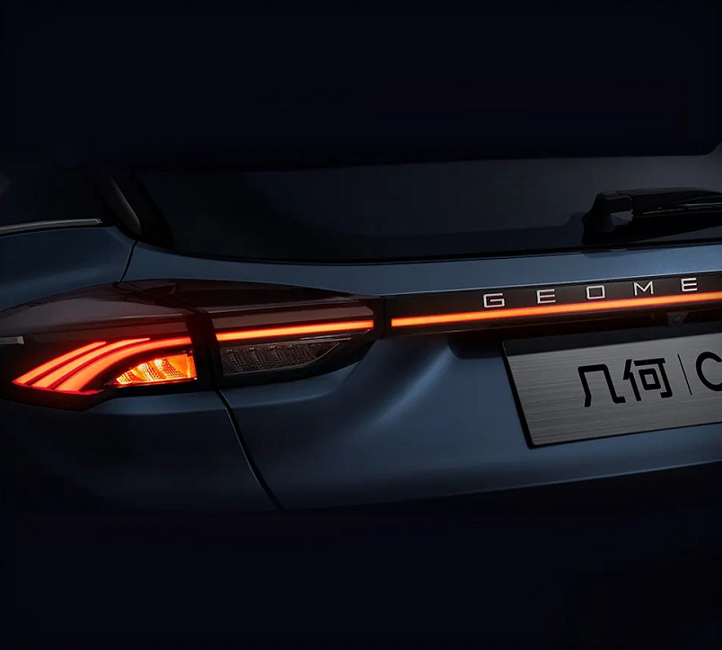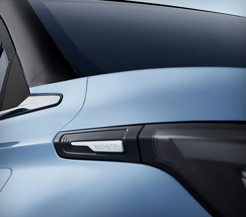 从尾部的细节图来看,全新几何C将配备光棱之羽贯穿式尾灯,灯组由216颗LED光源排列组成,灯体长达1.2米,夜间点亮后的视觉效果十分出众。此外,在尾灯上方还有着"GEOMETRY"标识,有着不错的辨识度。