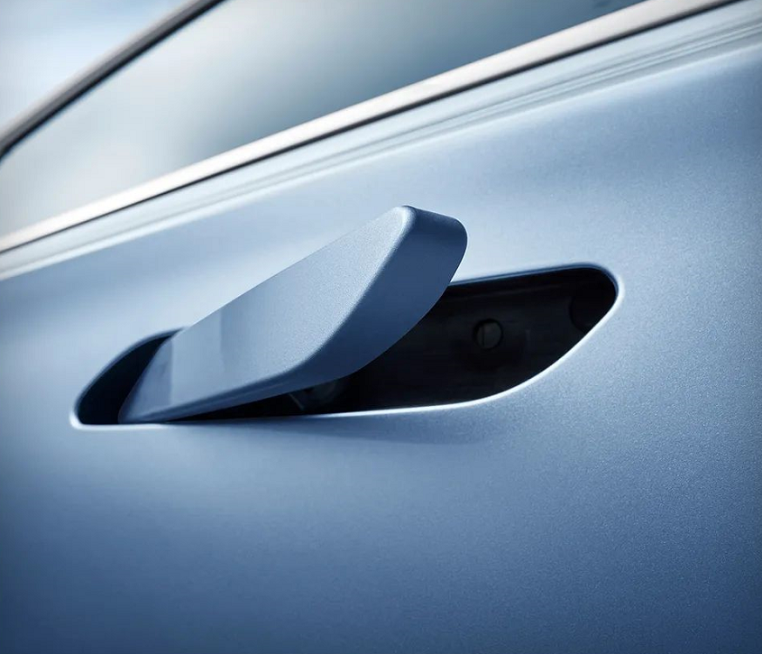 车身侧面,新车采用了流线型的设计,并配备了一体扰流悬浮式车顶,动感十足。值得一提的是,全新几何C采用了与车身同色的隐藏式门把手设计,可在近身时自动弹出,轻便实用,在多处空气动力学设计的作用下,几何C的风阻系数仅为Cd0.273,极大的提升了整车的续航能力。