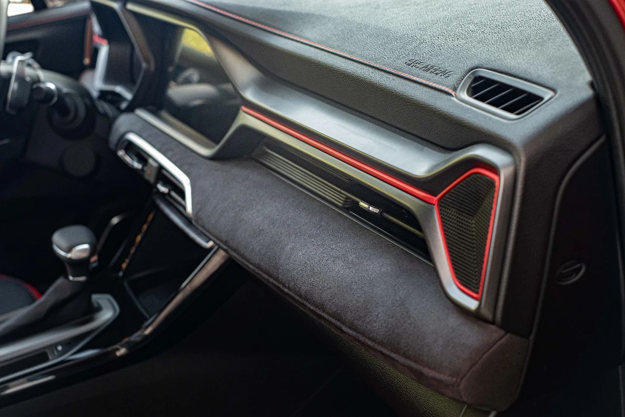 不过有一点还是想吐个槽,车都设计的那么战斗动感了,可是轮圈依旧使用了18英寸,从视觉上有点重心不稳的感觉,好在轮圈设计还是挺大气的,还有红色涂装的卡钳,能多少挽回一点视觉的落差。