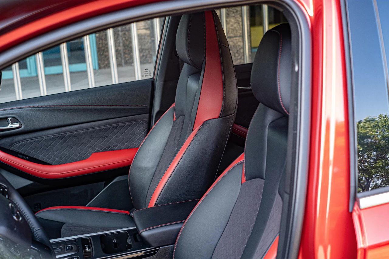 对于座椅设计咱们也得从两面来看,一体式的运动座椅设计肯定是没的说,而且在填充物方面软硬部位拿捏的也很得当,不过可惜头枕的位置没法调,还是失去了一些舒适度。