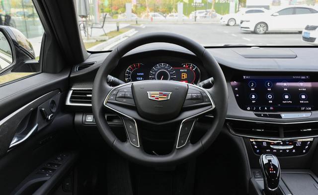 CT6的方向盘是那种比较大气的设计,手感不错,看着也很高级。仪表盘采用了液晶显示屏,配有HUD抬头显示功能。中控屏是内嵌式设计,符合美式豪华车的调性,里面也内置了苹果Carplay和百度Carlife功能。总的来说,凯迪拉克CT6的这套内饰没有雷克萨斯ES那般油腻,个人感觉比较适合中年男性消费者。