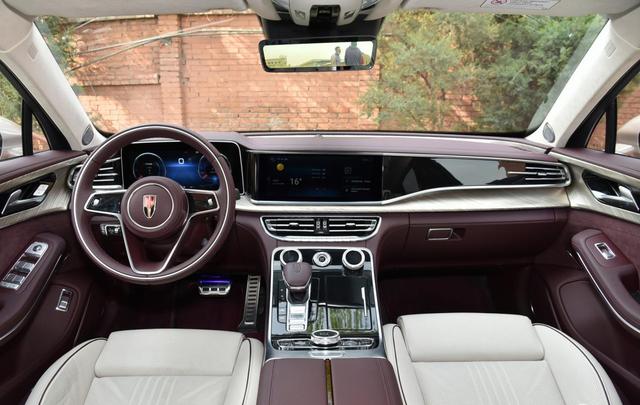 最后一款车的内饰就是咱们的红旗H9了,作为一款豪华中大型车,H9的车内采用了大量木纹、皮革和镀铬等材料,看着就十分高档,有一种宾利车的感觉。未点亮的中控屏幕和仪表盘与中控台相连,并搭载红旗Smile 1.0智能车载系统。值得一提的是,中控台上方的红色饰条,与车头的红色标志遥相呼应,仿佛从车外延伸到车内一般,这点我认为是国产豪车红旗H9的特色。
