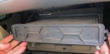 打开空调空气滤清器盖,拉出空调空气滤清器芯体;