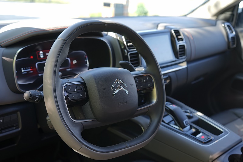 天逸C5 AIRCROSS的方向盘由真皮包裹,顶部和底部加入了圆角设计,不论是触感还是实际驾驶中的操控感都是比较不错的,这一点在后面的试驾体验中我们再来细说。