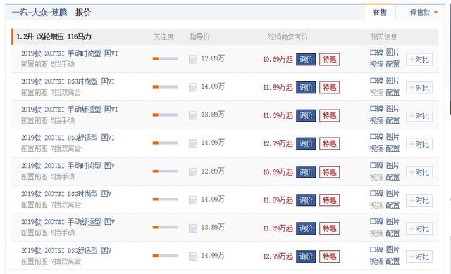其实,国内很多的大众车现在都不纯粹,或者说都只是一些中国"特供车"而已。像一汽大众捷达、宝来、蔚领,上汽大众朗逸、朗行、桑塔纳、凌渡,就都是大众集团以前一些老平台在中国换壳的产物,而真正可以去溯源追踪的,国内目前A级车里最纯正的也就只有高尔夫 (配置|询价)和速腾了。所以我为什么说10多万买大众千万别忽略速腾呢?就是因为它是全球车型而且还历经了七代,更何况现在它还能优惠2万,虽然不算大,但也已经是值得推荐入手的范围之内了。
