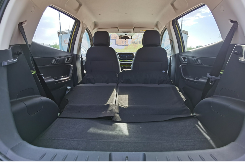 后排空间嘛,因为尺寸原因,应应急还是可以的,长途乘坐那就有些累了。后排座椅也支持放倒,放个大物件的话,这辆小车也能胜任。