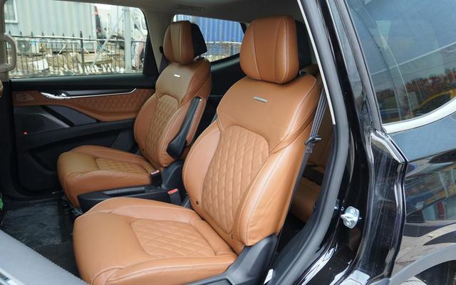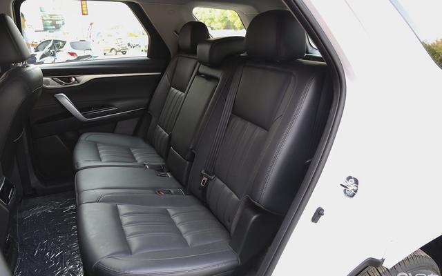 中控造型规规矩矩,做工和用料上值得肯定,像什么红色缝线、Alcantara、仿碳纤维这些材质它都有,中控屏里内置的也是最新的斑马智行系统,语音操作很便捷,易用度也很高。总体来说,上汽MAXUS D90 Pro的内饰我觉得要比RX8要更精致,这点毋庸置疑。空间上第二排表现也不错,腿部有两拳,算正常水平。第三排空间中规中矩,但腿部空间比RX8好,头部也有1拳多,这点值得肯定。