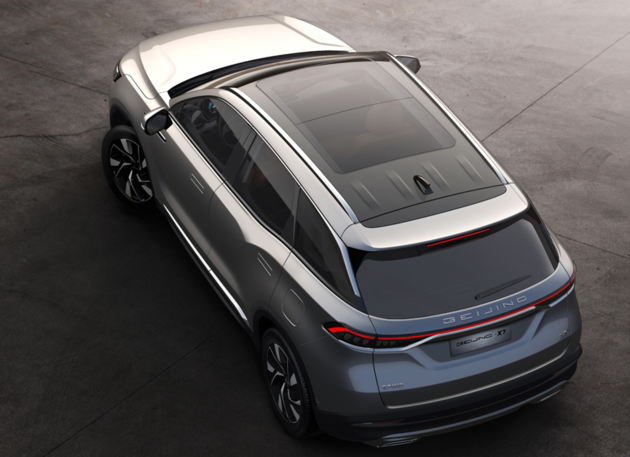 车辆尾部,BEIJING-X7造型十分饱满,并采用了时下流行的贯穿式尾灯设计(内部或为LED光源),预计在夜间点亮后会有着不错的视觉效果。尾灯上方,大写的BEIJING字母LOGO同样十分醒目,辨识度得到一定程度提升。