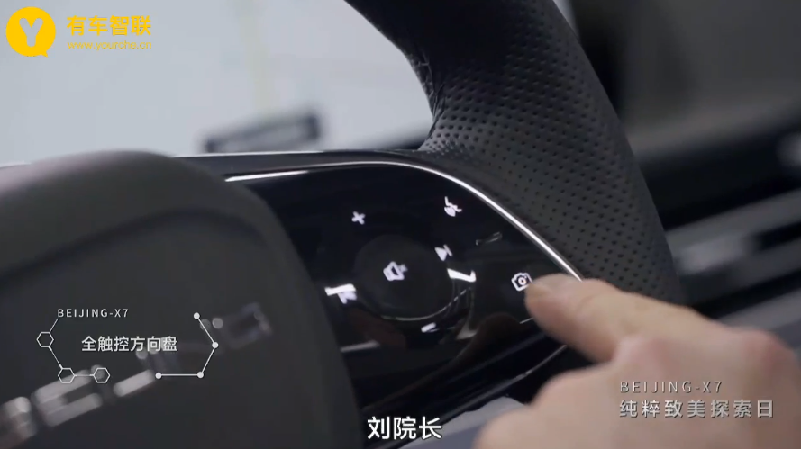 全新BEIJING-X7配备的全触控方向盘上集成了诸多按键,其中一项比较有意思的功能就是可以随时随地的拍摄照片,通过车载摄像头(同时也是行车记录仪),仅需一键就能方便快捷的记录旅途中的美景,更是能够在事故中及时去证,方便责任认定。