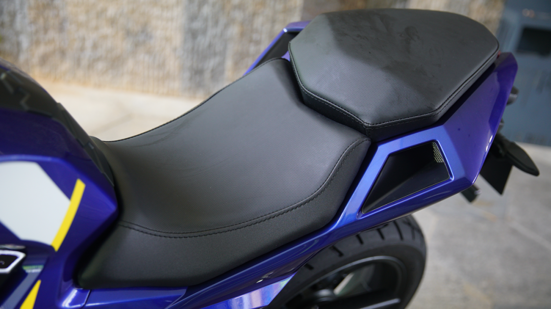 780mm的座高很亲民,再加上座垫前方的收窄设计,身高170的骑士也能轻松驾驭。座垫填充物支撑性很好,但又不是很硬的感觉。
