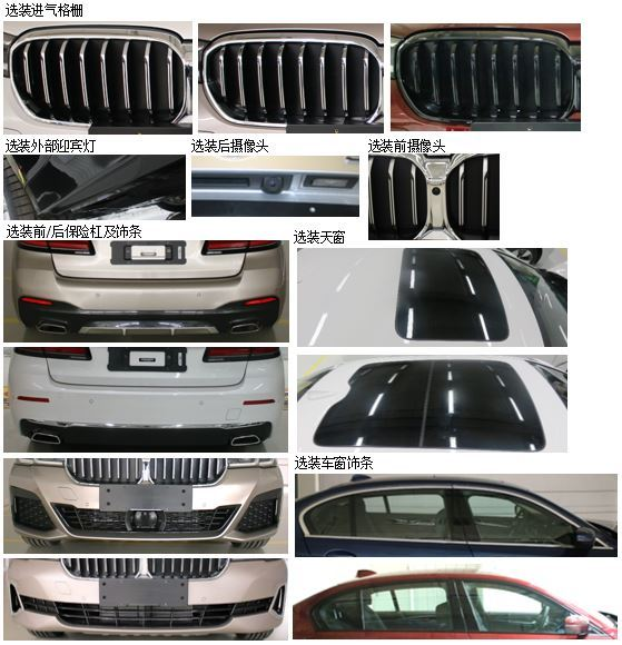 外观方面,新车延续海外版车型的整体造型设计,继续提供“豪华套装”、“运动套装”,以及“曜夜版”外观样式。前脸采用大尺寸的双肾进气格栅和全新样式的大灯组,两侧头灯组采用了类似3系的设计元素,样式新颖。前包围采用三段式结构,大面积的下进气口使新车前脸更具运动感。尺寸方面,新款5系长宽高分别为5106/1868/1500(1490插电混动版车型)毫米,轴距达3105毫米。新车还提供不同样式格栅、前后保险杠、车窗饰条、头灯等配置选装。