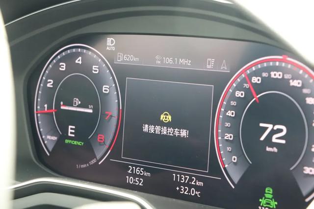 跟目前主流的自动驾驶辅助一样,如果手离开方向盘大概30秒,系统会提醒你接管操控车辆。美中不足的是,A4L上的这套驾驶辅助真的只能起到辅助的作用,如果系统没有识别到路上的车道线,车道保持会直接退出,甚至没有任何提示,所以这套系统更多的作用是减轻驾驶员跑长途的压力,驾驶者依然需要随时留心路况。