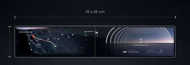 此前,曾有一组疑似蔚来汽车全新的内饰设计及车机的UI界面效果图曝光。新内饰的样式与蔚来在售车型上现用的的样式完全不同,中控台上贯穿的屏幕取代了现款的纵向放置的大屏幕,这块连屏的尺寸达到了70*16cm。