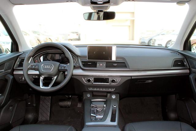 来到奥迪Q5L的内饰,虽然豪华感不强,但科技感依然还是有的,采用奥迪引以为傲的虚拟驾驶舱设计。40 TFSI荣享进取型和荣享时尚型内饰标配拉丝铝亚光饰条,45 TFSI尊享时尚型(及以上)配备了斜纹银色铝饰条和棕色木饰条。