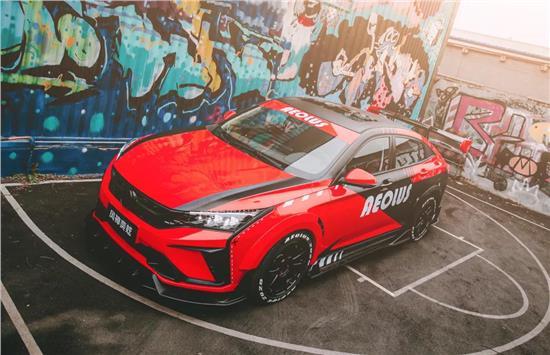 最明显的改装痕迹就是这个酷炫的拉花了,这才跟奕炫的名字呼应上嘛,另外这台车还做了个宽体小包围、夸张的大尾翼、锻造轮毂以及致敬热熔胎的轮胎英文喷绘。大家是不是已经忘记原厂的样子了?下面我们就来看一下这台华系改装代表的原型车到底怎么样。