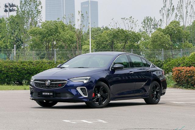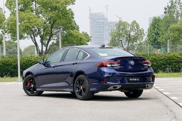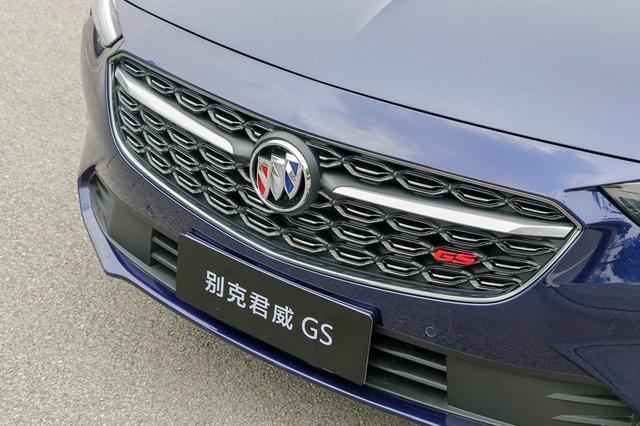 继续使用了君威GS专属的皇室蓝配色,与马自达阿特兹上的魂动红一样,具有较为明显的品牌特征。前杠底部开口面积明显更加宽大,两侧"獠牙"造型也进行了精简,相较老款车型,君威GS侵略感明显提升了不少,红色"GS"标志更是加展现出了它的运动身份。